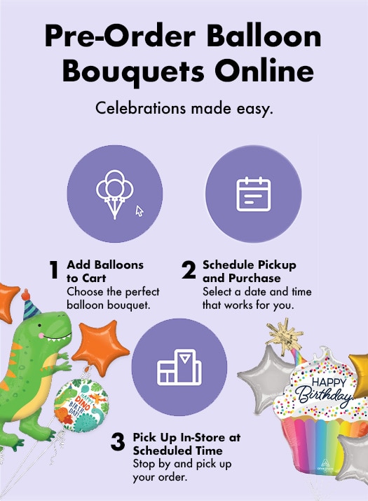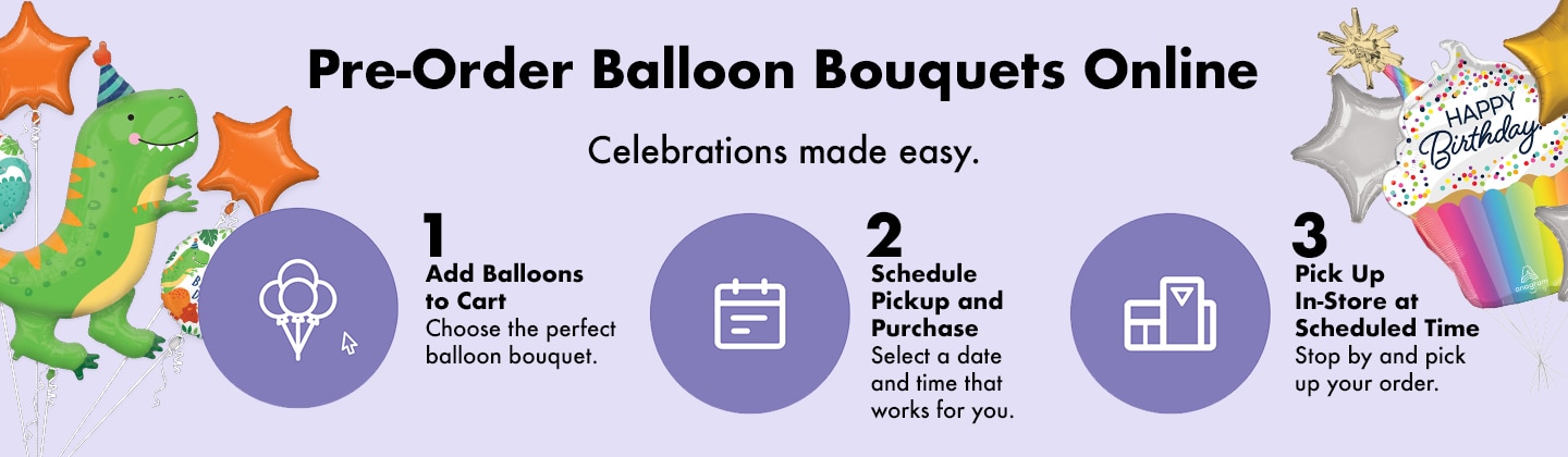 Make party planning simple— order your balloon bouquet online and schedule your pickup appointment.