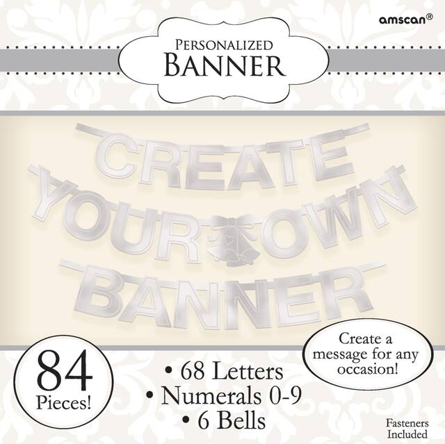 Features silver foil letters, numbers, and fasteners than can be put together to display your special message