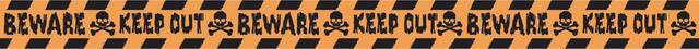 Caution buyers or visitors to stay alert with the Keep Out Beware Tape Halloween Party Decoration, 100-ft,