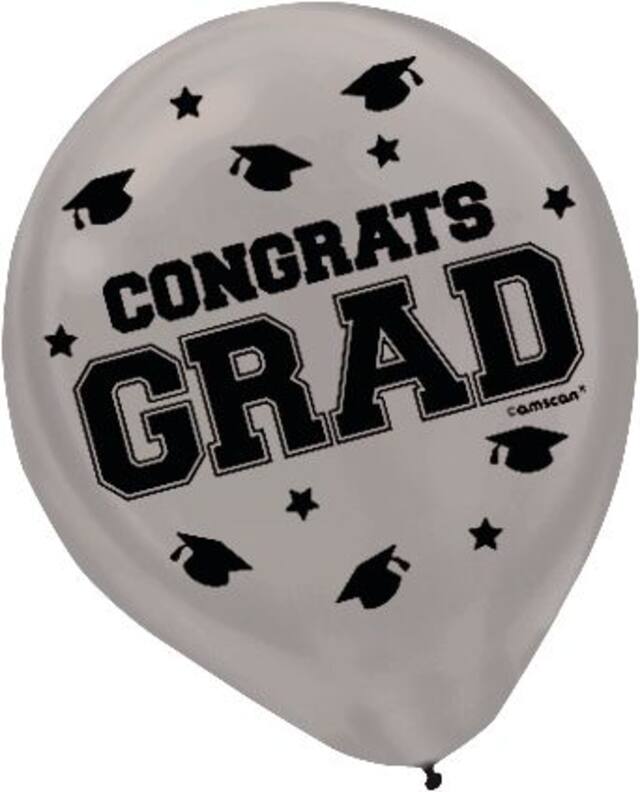 • Package of latex graduation balloons includes 36 black balloons printed with white designs 18 solid gold balloons and 18 solid silver balloons