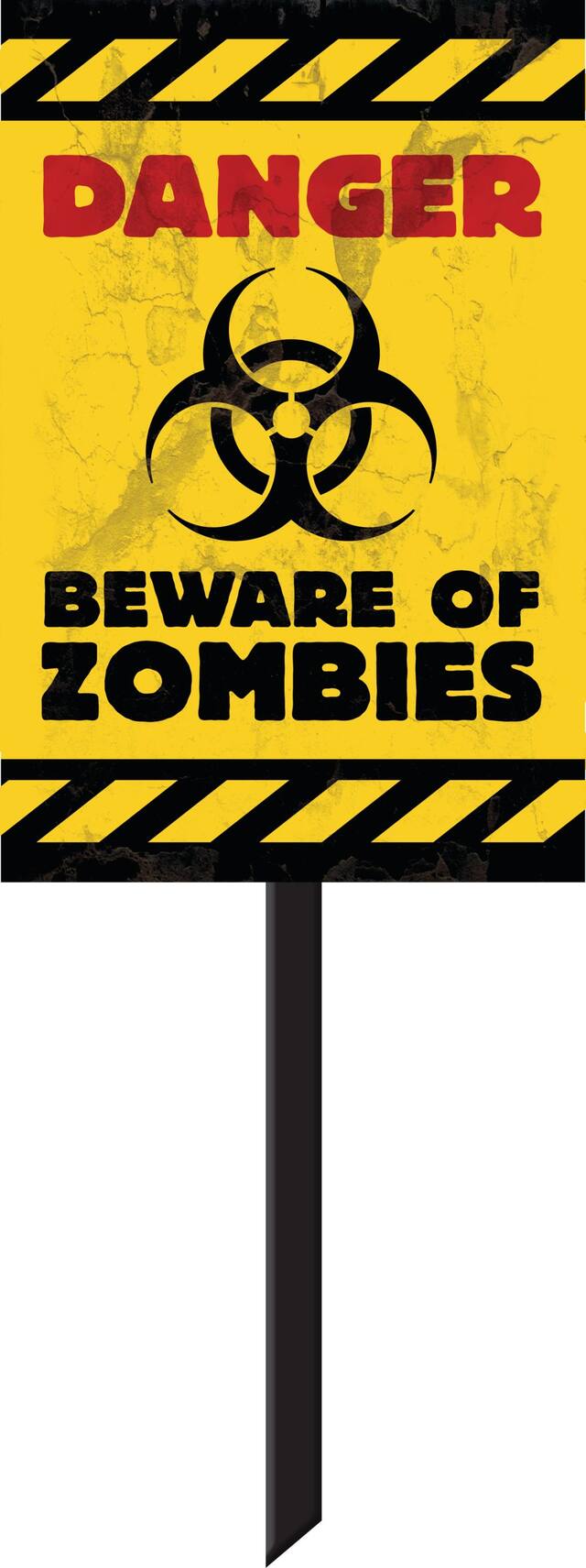 You may be interested in these similar products shown below.Danger Zombies Yard Sign features a bright yellow plastic sign that reads "DANGER BEWARE OF ZOMBIES" with the biohazard symbol