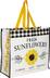 • Reusable tote bag features a sunflower print with black and white check borders