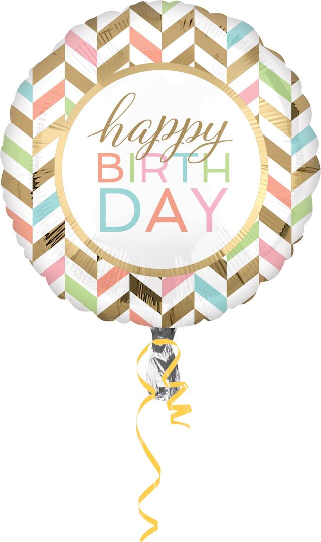 This balloon bouquet addition gives your birthday party a chic look. The foil balloon displays alternating gold and pastel stripes on white with a warm "Happy Birthday" message at the center. Pair it with solid-colored balloons to coordinate with the rest of your birthday party decor. At 27 1/2 inches wide, the self-sealing, reusable foil balloon elevates any celebration decor while keeping helium costs down.