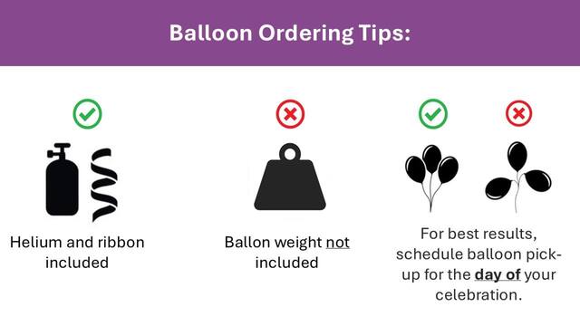 Balloons look their best the same day as inflated. For best results, schedule balloon pick-up for the day of your celebration. Inflated balloons are not returnable. Appointments can be modified or cancelled up to 24 hours prior to the date and time selected. Please visit our FAQs for more details.