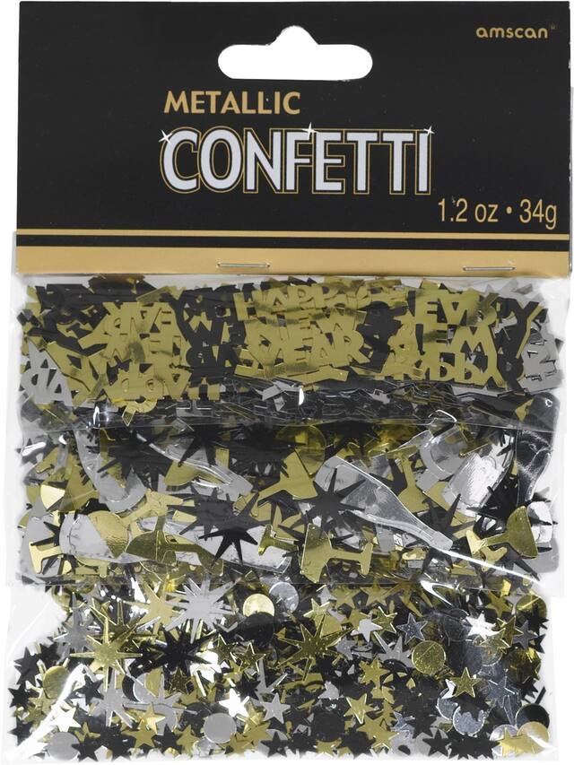 Give table settings, invitations and party favour bags a festive finish with Black, Gold and Silver New Year's Confetti