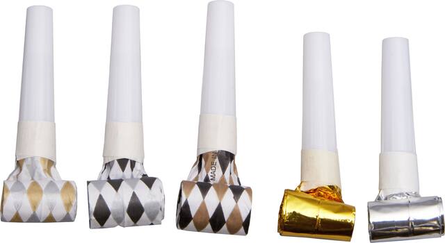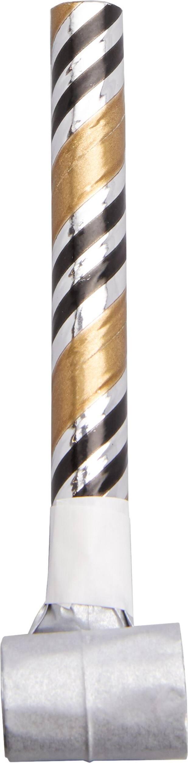Make noise for the new year with Black, Gold and Silver New Year's Eve Party Horns Blowouts