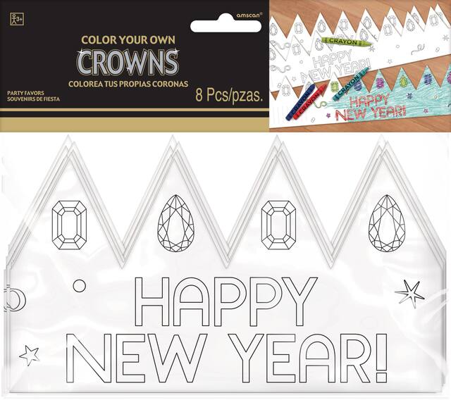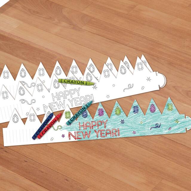 Each crown hat comes with a blank "Happy New Year" design for kids to customize however they want