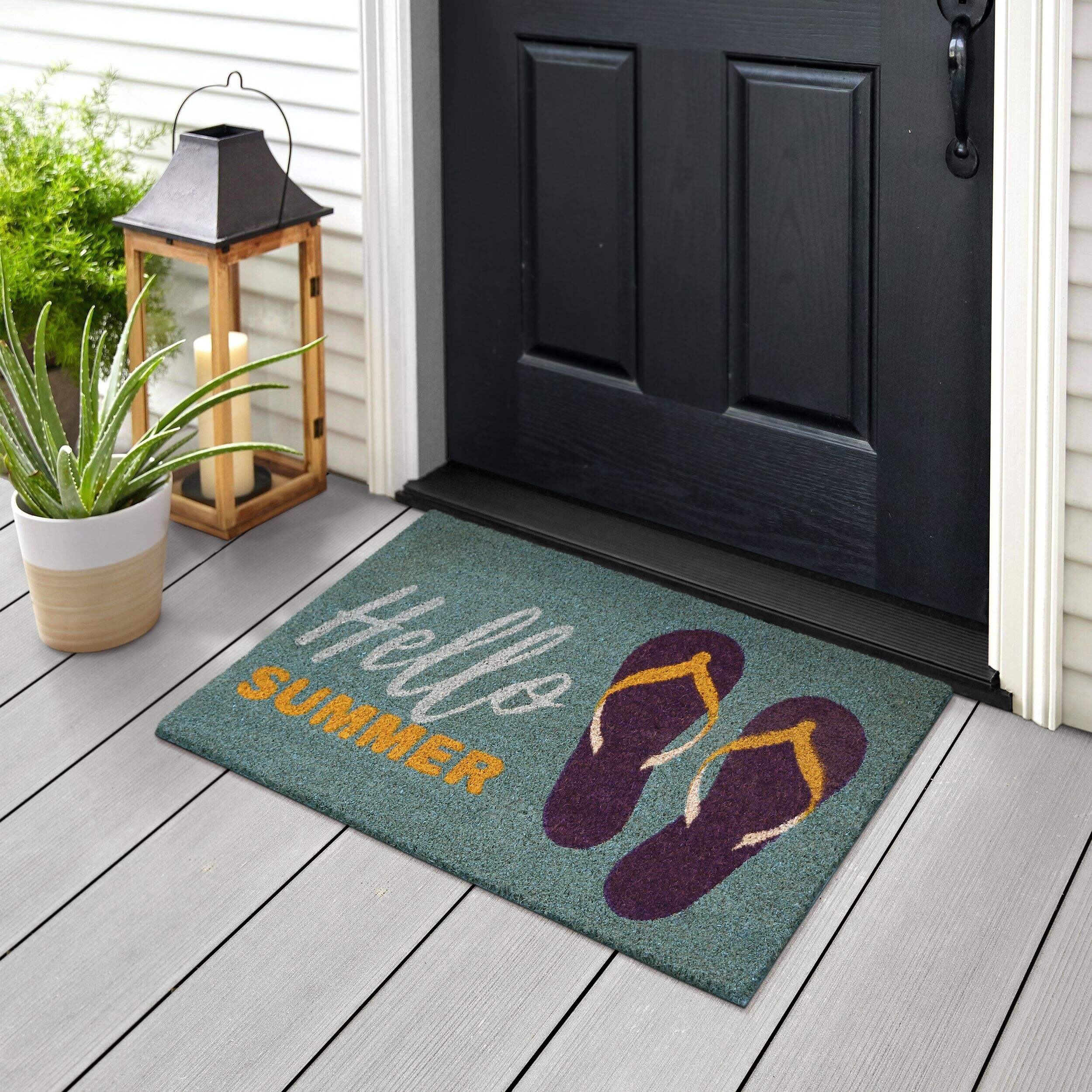 The Multy Home Hello Summer Flip Flop Natural Coir Outdoor Doormat is made from natural coir fibers, which are excellent at scraping dirt and debris off the surface of footwear. The coir design is backed with phthalate-free vinyl for durability. Simply shake or spray the mat with a garden hose to easily clean it. Measuring 18 x 30” (45.7 x 76.2 cm), the doormat is the perfect size for entrances, decks, and patios. With just a single mat, it’s easy to keep outdoor mud and grime outside your home.