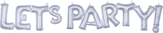 Air-Filled Prismatic Silver Let's Party Cursive Letter Balloon Banners adds some prismatic flair to your party decorations and reads "Let's Party! " in a fun block letter font