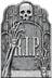Skull and RIP sign are carved into the faux stone and layered on top of the tombstone design are two skeletal hands as if reaching from beyond the grave