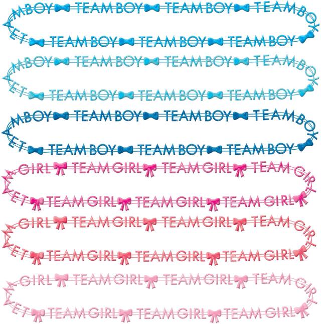 Necklaces feature letter beads that spell out Team Boy and Team Girl