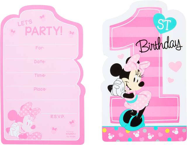 Everyone's favourite mouse sits in front of a "1st Birthday" message on these fun invitations