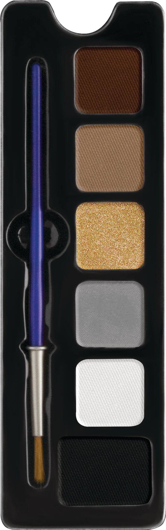 Kit includes a premium applicator brush and a palette of six fast-drying water-activated and non-smudge colours