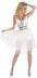 Ensemble includes a white multilayered knee-length tutu skirt, a shiny white belt with a metal Boy Toy belt clip, and chain and beaded necklaces with a cross