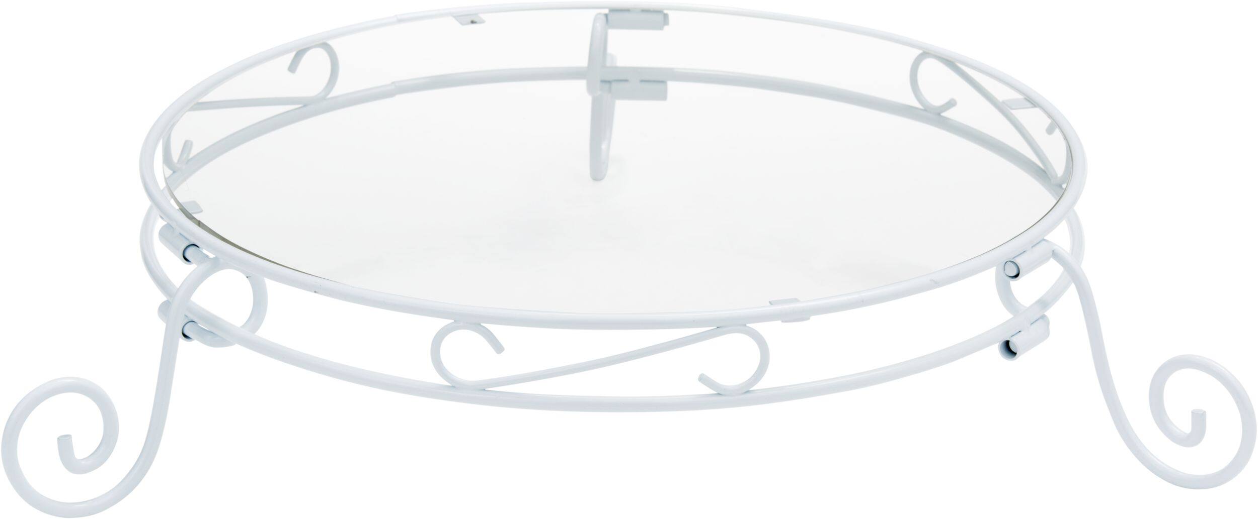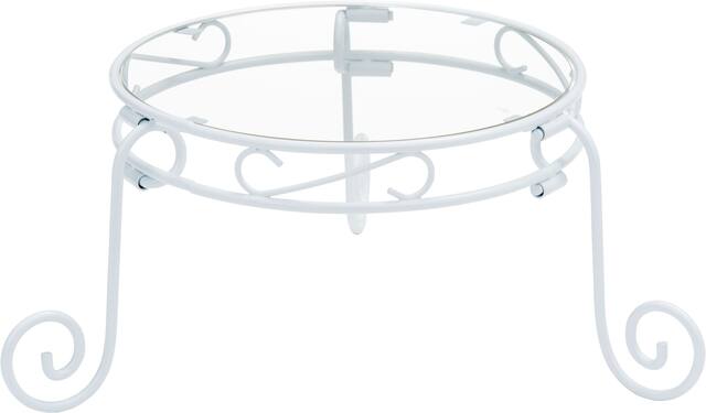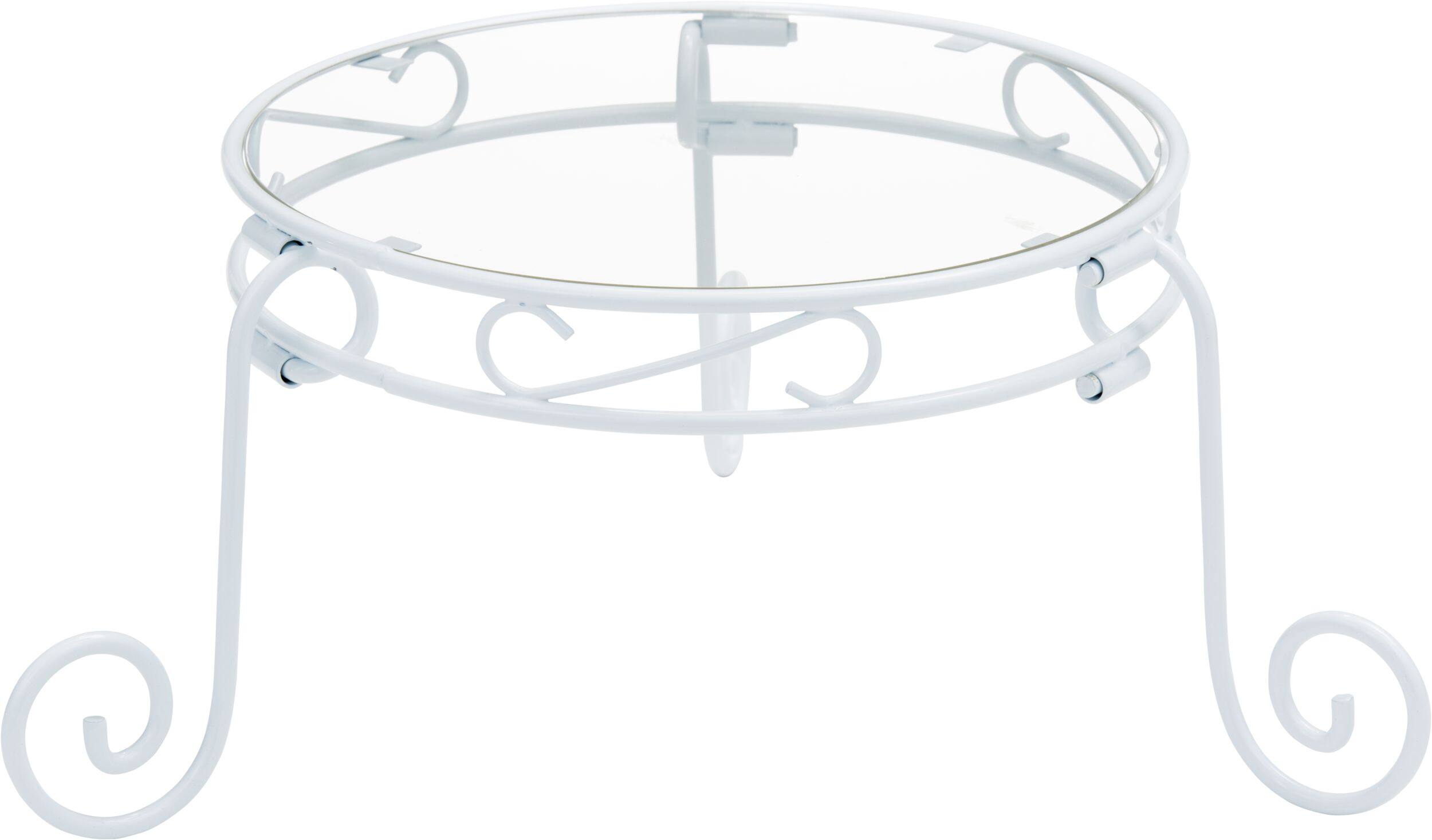 Features clear, glass-like plastic plates and neutral white finish legs
