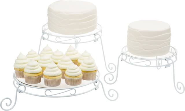 You may be interested in these similar products shown below.Mix and match multiple display combinations with this Adjustable Cake Stand Set that features 3 stand sizes and removable wrought-iron scroll legs