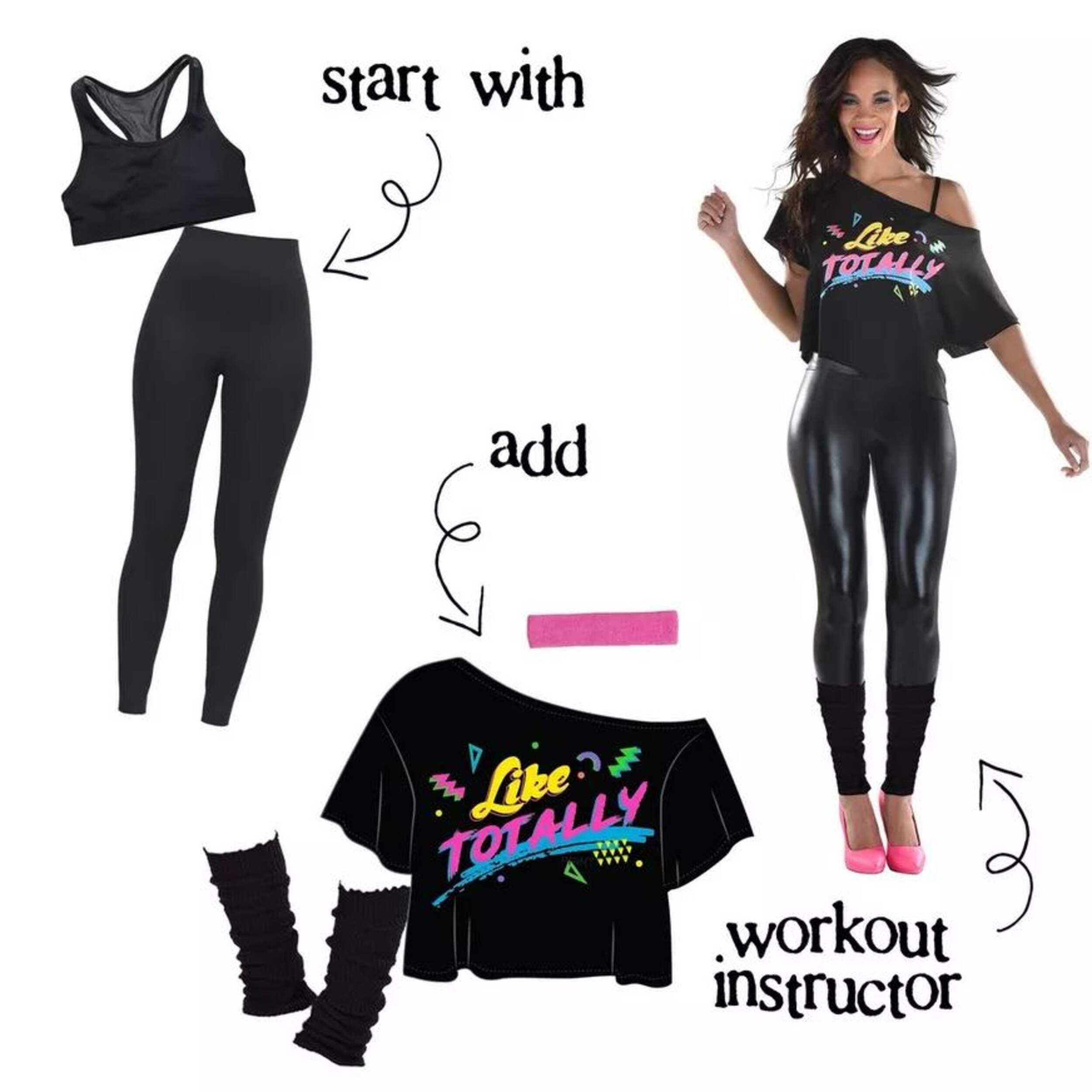 Loose-fitting crop top is worn off the shoulder and makes the perfect decade costume