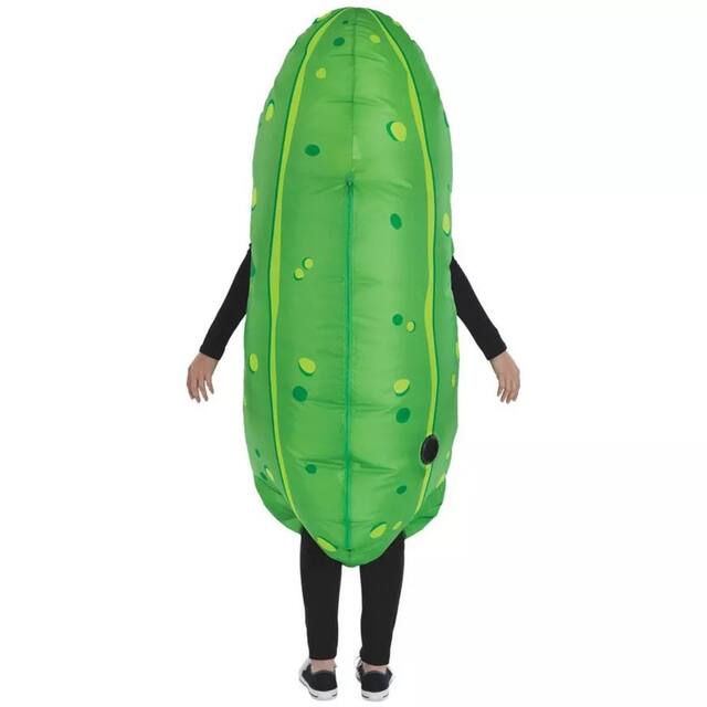 You may be interested in these similar products shown below.Stand out this Halloween with the Adult Inflatable Green Pickle Costume. This unique and funny inflatable costume is sure to bring laughter and joy to any party or event. Perfect for those who love quirky and memorable costume ideas.