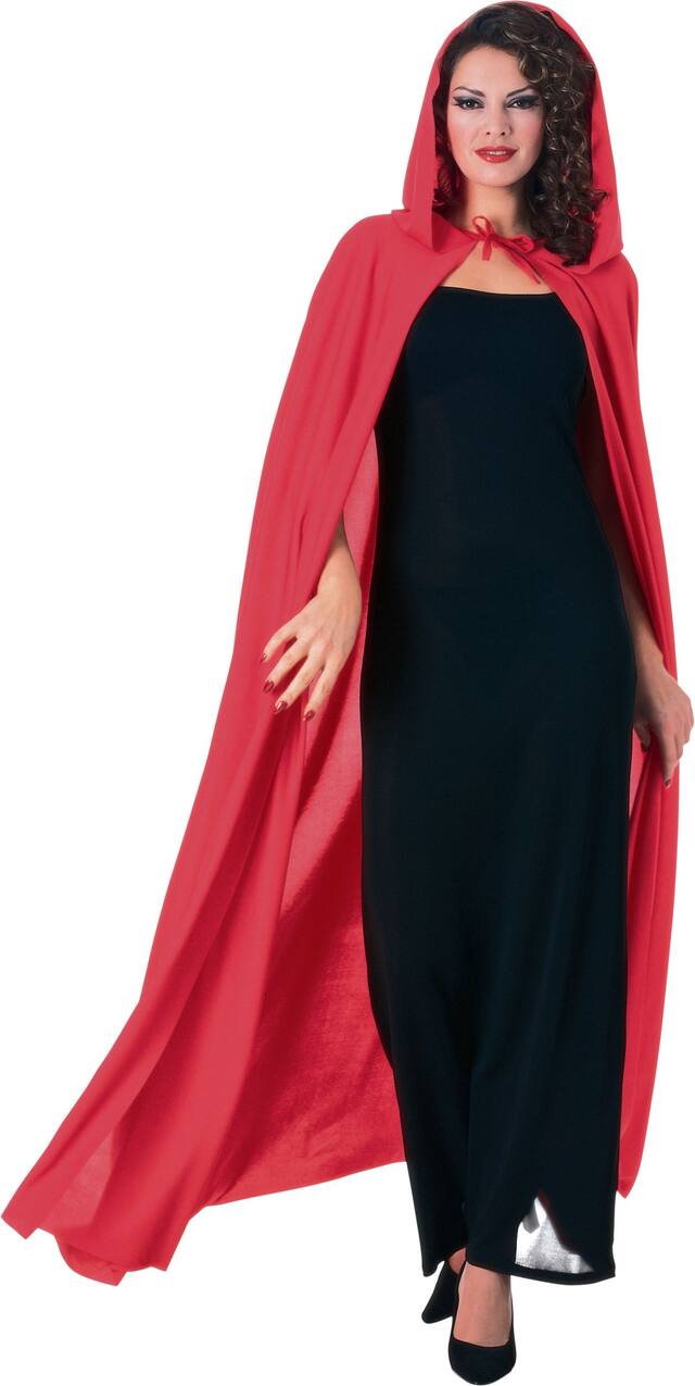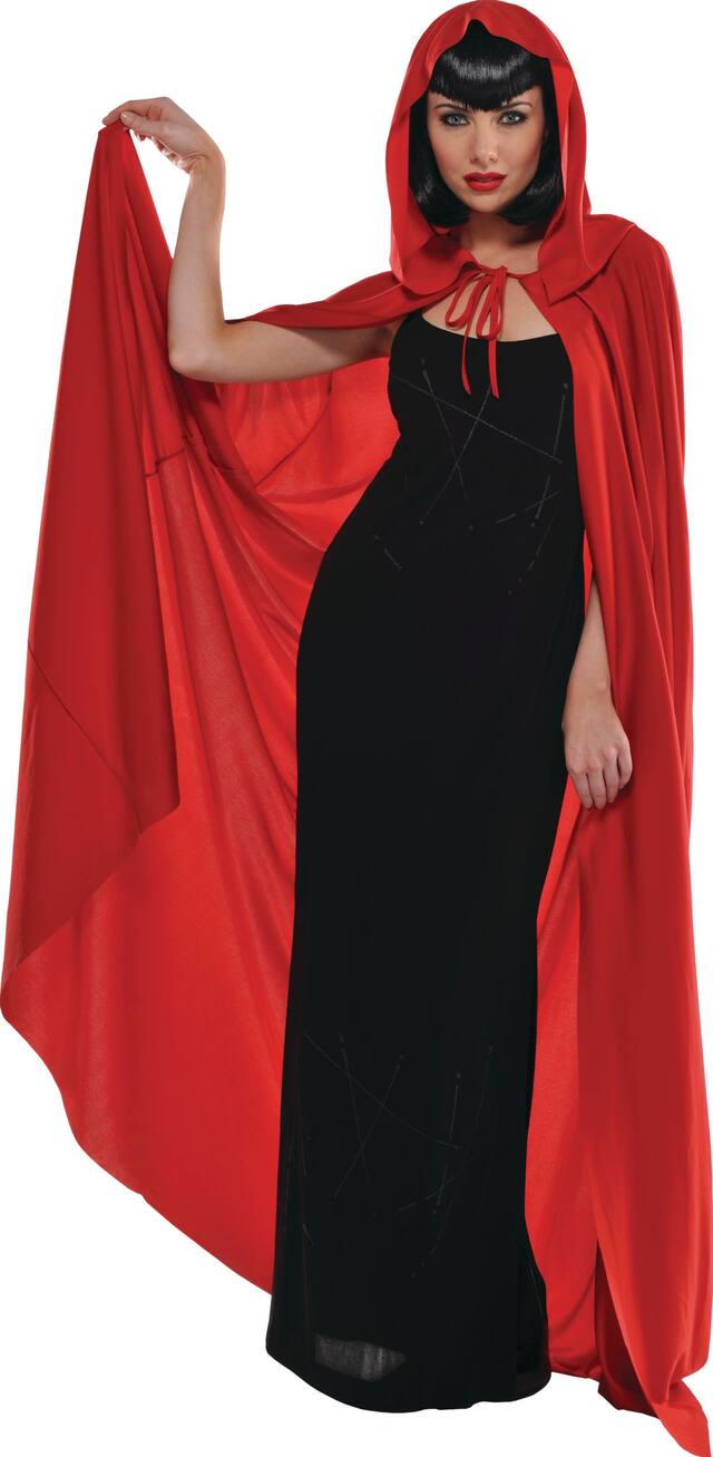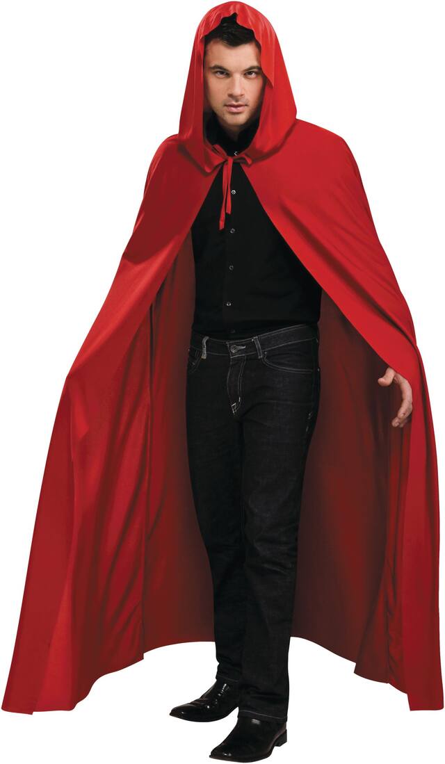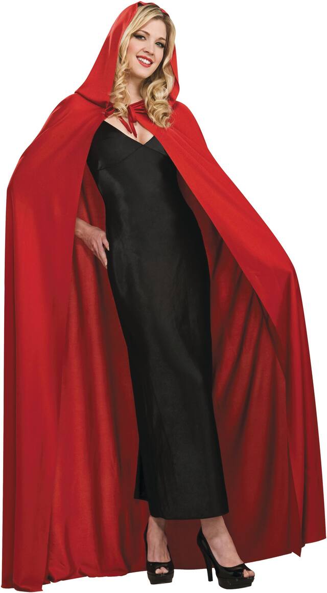 Adult Red Hooded Cape puts a brilliant crimson finish on your costume character, whether you're dressing up as Little Red, a demon, or a vampire.