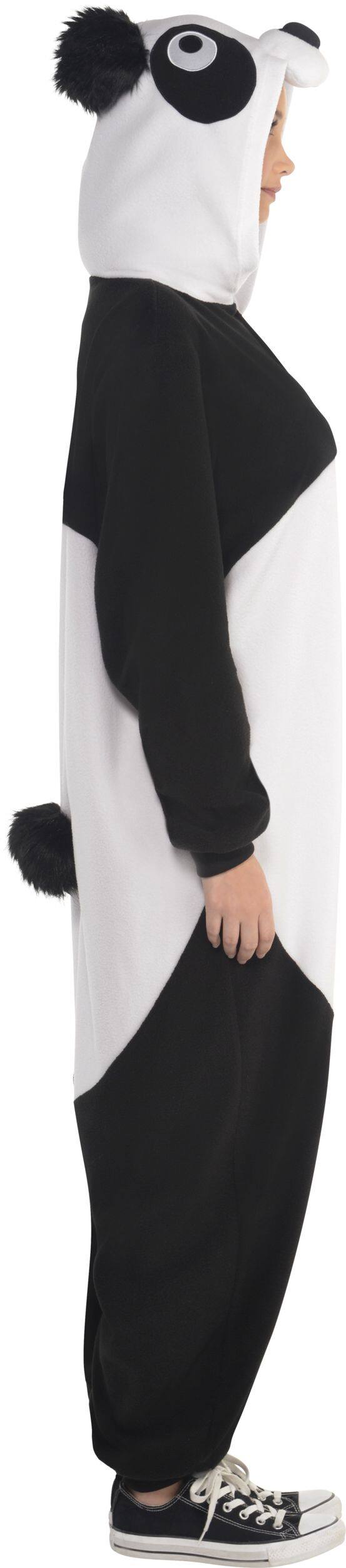Made of comfortable fleece the warm hooded one piece features elasticated wrist and ankle cuffs and panda ears attached to the hood