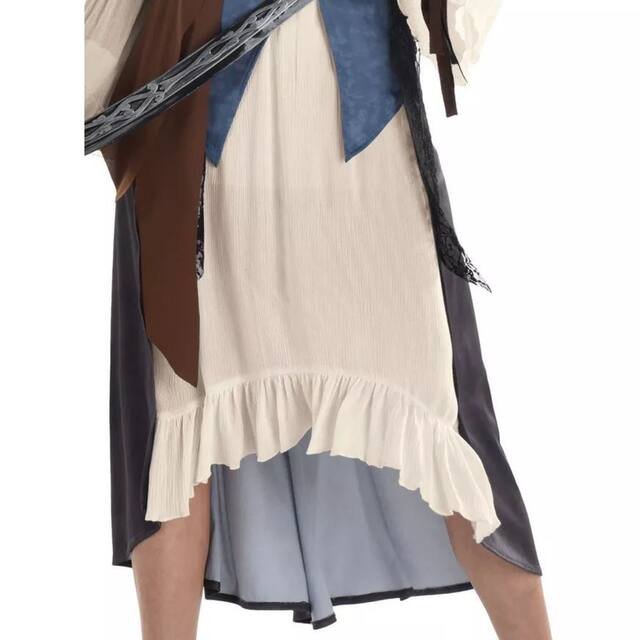 Transform into an elegant pirate this Halloween with the Adult Posh Pirate Blue/Brown Dress Costume. This stylish ensemble features a peplum-style dress and an attached blue suede jacket, perfect for making a statement at any costume party. Complete your look with the included black velour choker and black suede bicorn hat adorned with a gold skull-and-crossbones.