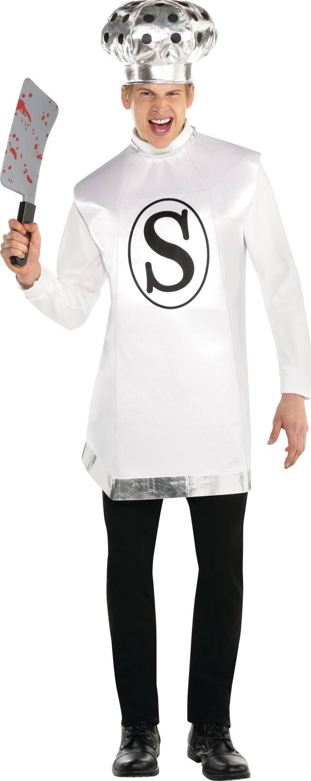 Complete the costume with the bloody cleaver and everyone will be terrified when you show up to the Halloween party as a killer salt shaker