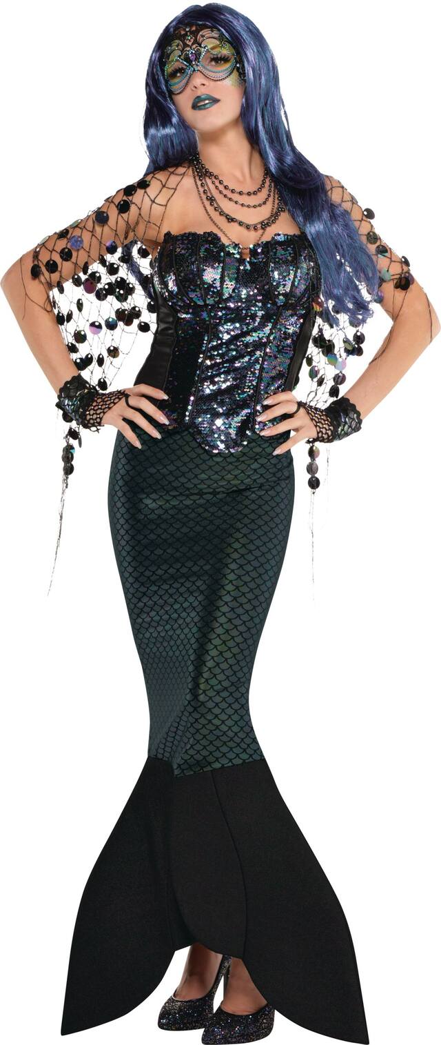 You may be interested in these similar products shown below.Adult Sea Siren Mermaid Corset is a polyester and spandex corset that features oil slick sequins and black lining to give off a shell-like look