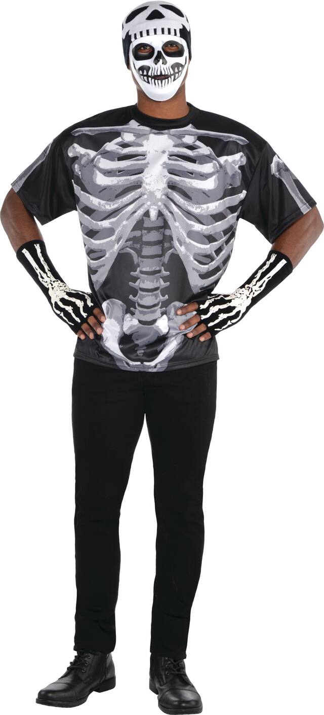 This Black and Bone T-Shirt is the perfect attire to elevate your Halloween outfit! Embrace the spooky spirit with its eerie grayscale skeletal print, meticulously designed to resemble real bones. This T-Shirt showcases a haunting design on both the front and back, ensuring a complete and bone-chilling look. Designed to fit most teens and adults, the Black and Bone T-Shirt is an ideal choice for Halloween.