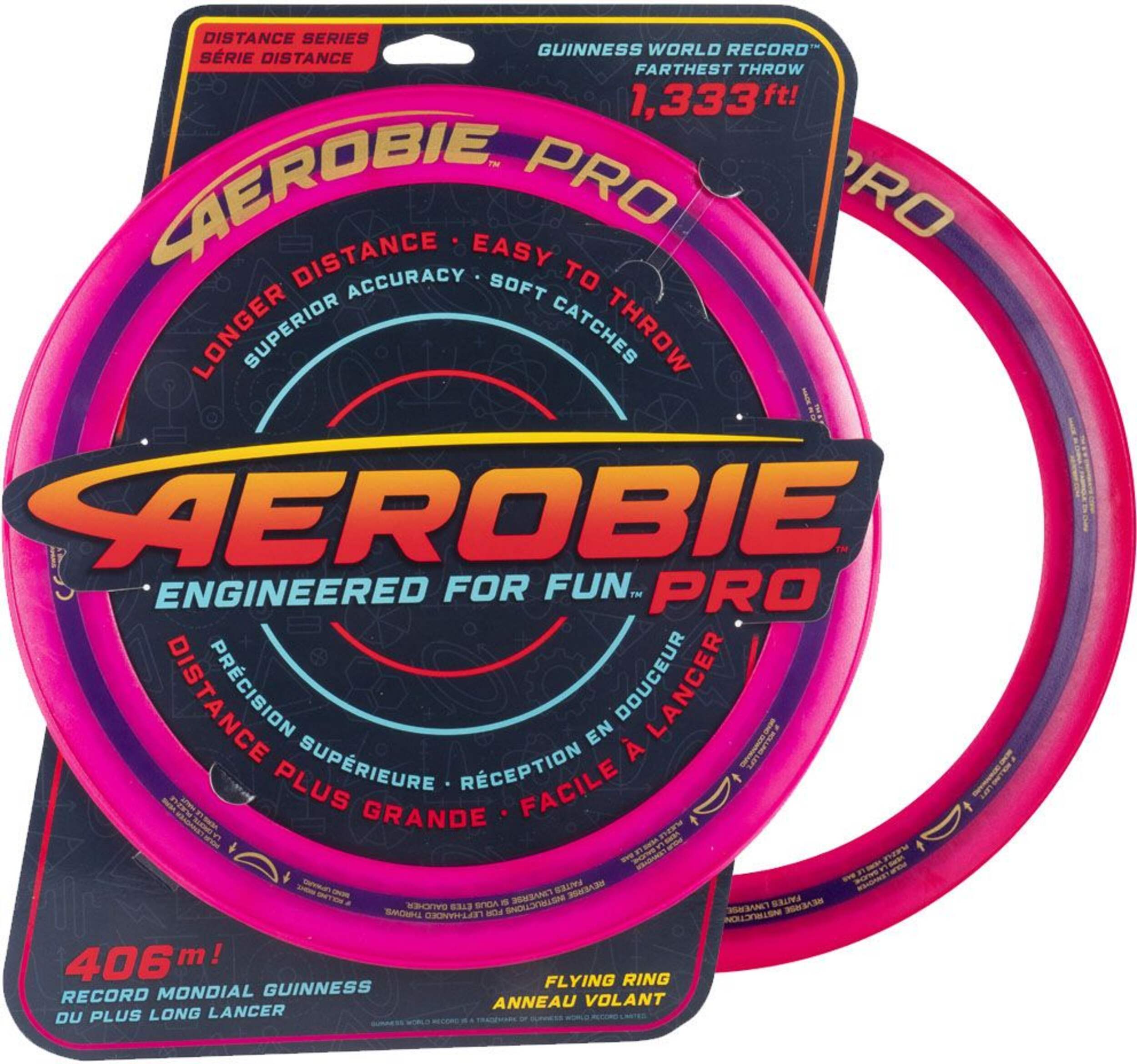 • Play catch with a friend up to 100 yards away with the Aerobie Pro Ring Flying Disc