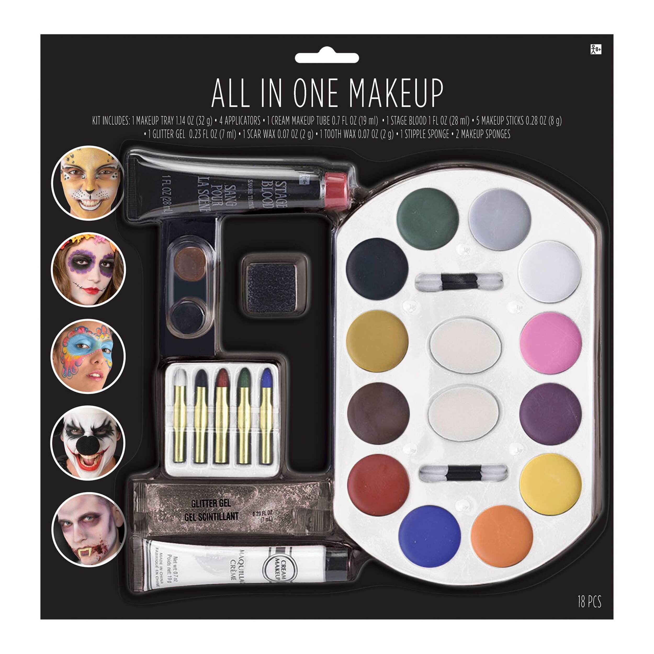 Features a variety of cream makeup shades, glitter gel, scar wax, tooth wax, applicators and more to complete your look