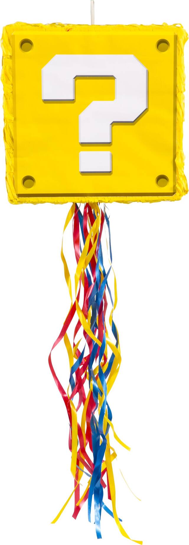 Level up your party with the Amscan Super Mario Bros Question Block Pinata. Made of durable cardboard and paper, it is shaped like the iconic cube with question marks on each side, a must-have for any Super Mario-themed celebration. Perfect for adding excitement, this pull-string pinata is a fun and safe party game for all ages. Fill it with treats, candies, or small toys, and let the fun begin at your next event or birthday celebration.