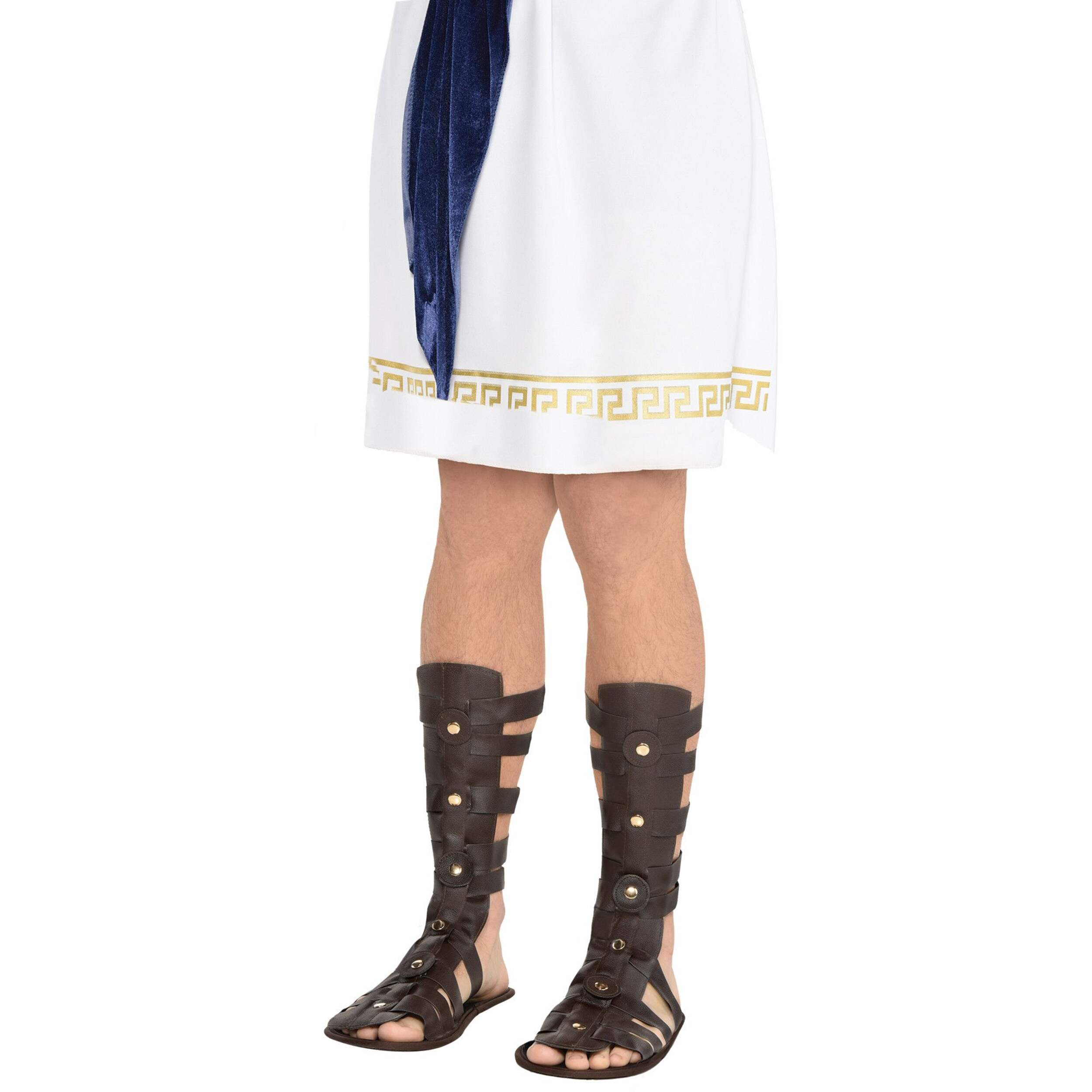 Step into the past with these Deluxe Brown Gladiator Sandals, perfect for completing any gladiator costume or historical costume. Crafted from faux leather material and adorned with a gold studs design, these brown color sandals add an authentic touch to your Halloween ensemble. Ideal for costume parties and historical reenactments.