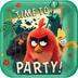 The green paper plates feature the headline Time to Party! with Angry Birds characters Red, Bomb and Chuck