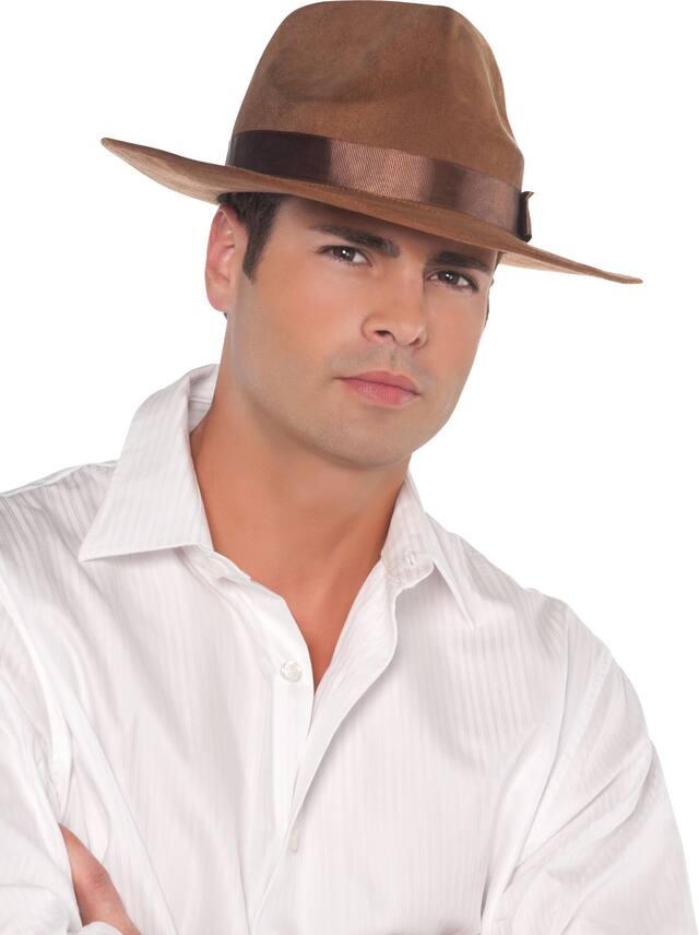 Dig up a good accessory with the Archaeologist Party Hat. This explorer's must-have accessory features a ribbon band encircling the crown. Made of brown faux suede, this Halloween hat is lightweight and soft. Indented creases in the crown and a flat brim add authenticity, so we know you're about to go digging. The fabric hat measures 12.5 inches wide x 14 inches long x 5 inches tall. One size fits most teens and adults.