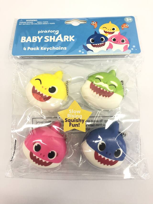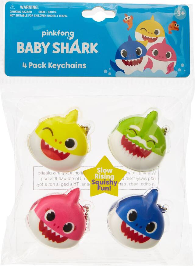 You may be interested in these similar products shown below.These ultra soft and squishy Baby Shark keychain toys are perfect for birthday party favors. Kids age 3 and up will have fun squeezing the squishies, watching as they slowly return to shape like memory foam. Just place them on a little one's key ring and they'll provide hours of entertainment on the go. Help your child pretend to swim away like their favorite singing shark with these fun and squeezable keychains that encourage imagination.