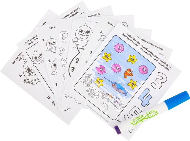 You may be interested in these similar products shown below.The Baby Shark Magic Ink Colouring Book features Daddy Shark, Mommy Shark and Baby Shark on the cover