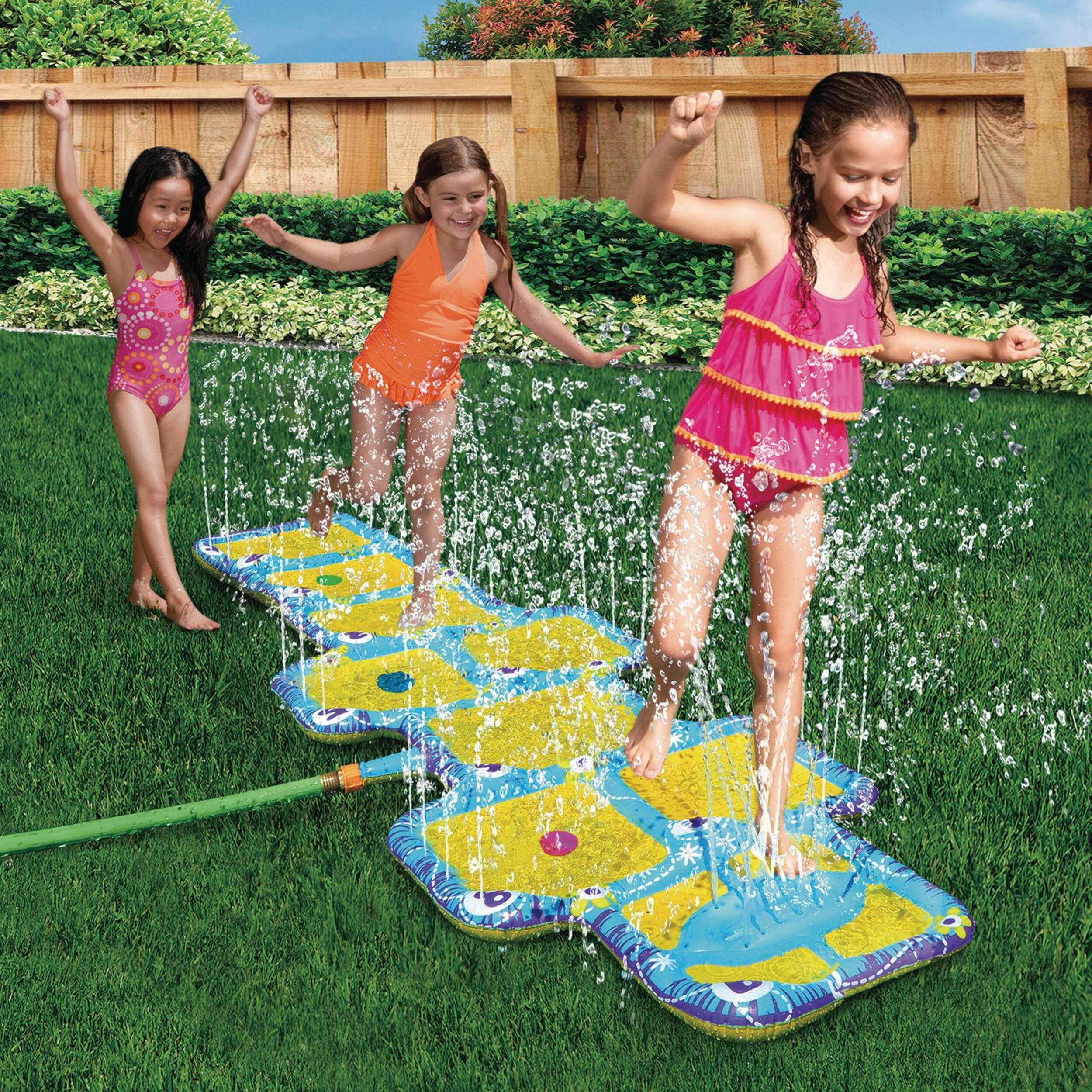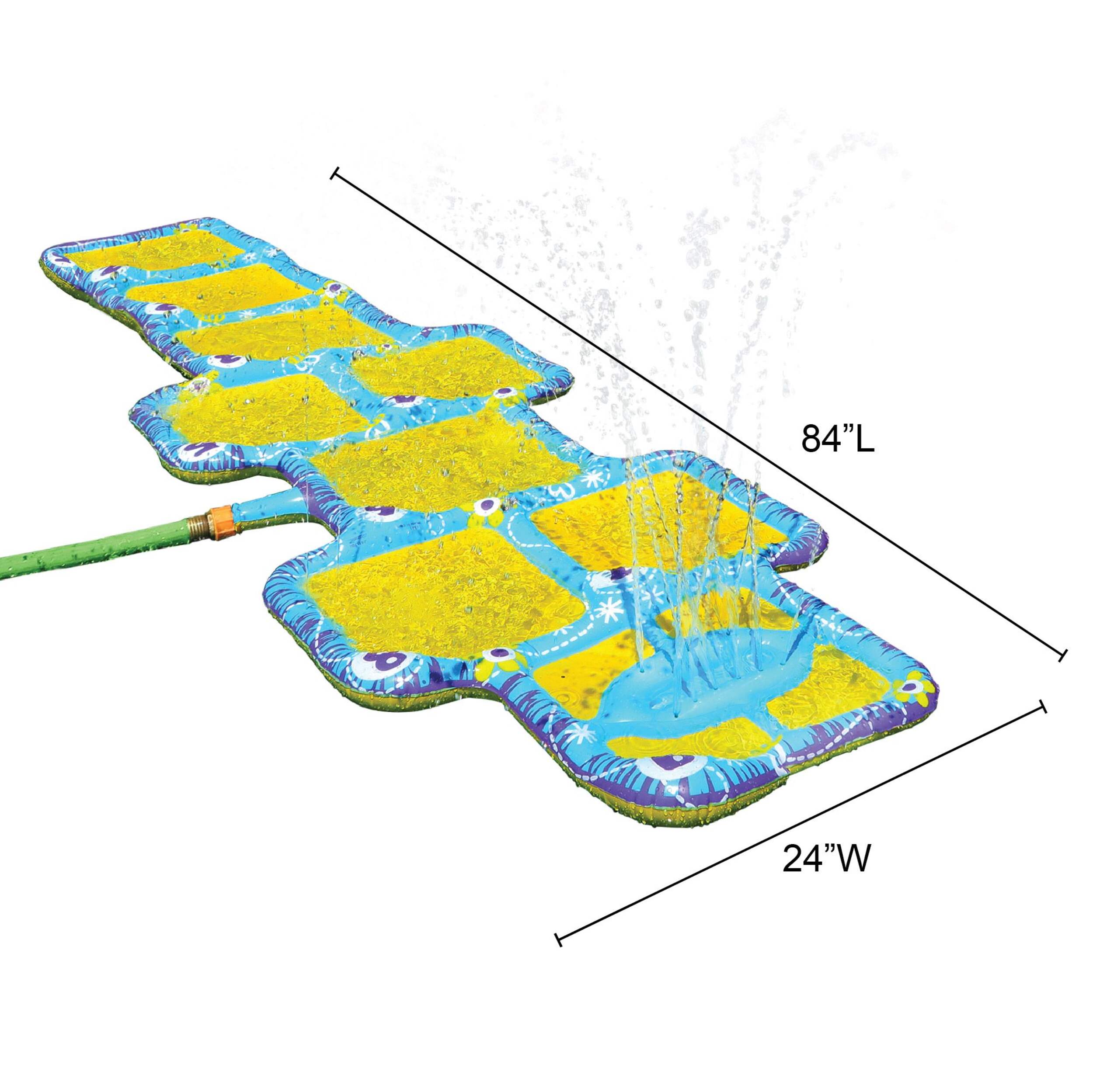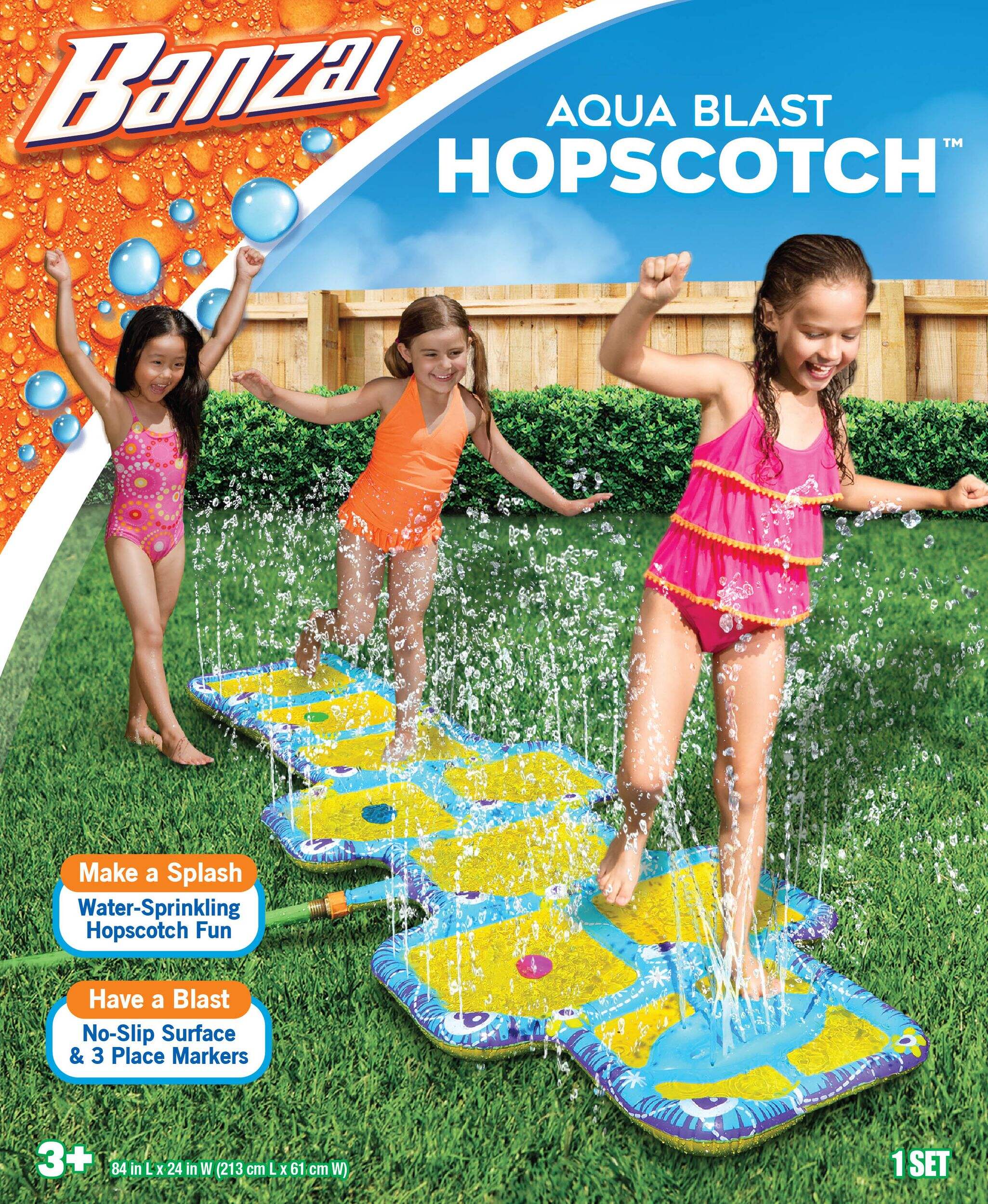 The refreshing water-sprinkling mat of the Aqua Blast Hopscotch™ will keep you cool and playing all summer long!
