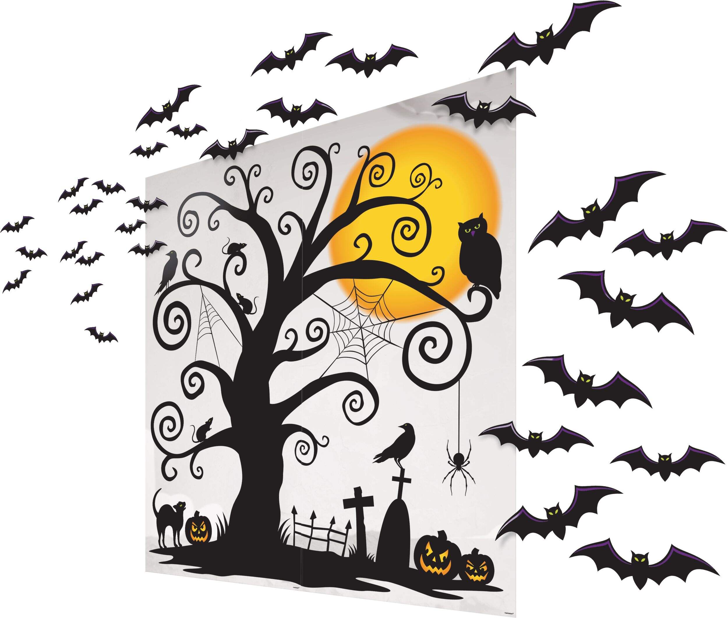 Complimentary bat cut-outs add the finishing touches to your spooky scene