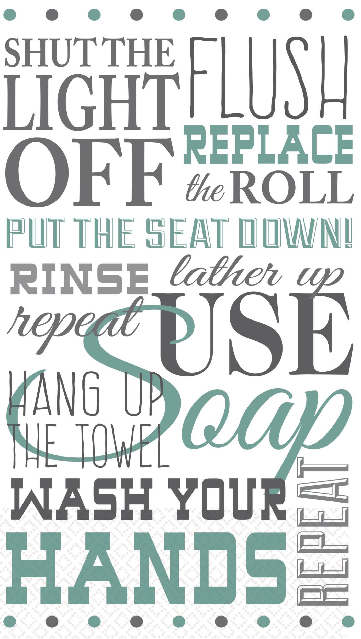 You may be interested in these similar products shown below.Bathroom Etiquette Guest Towels feature phrases such as "replace the roll" and "wash your hands"