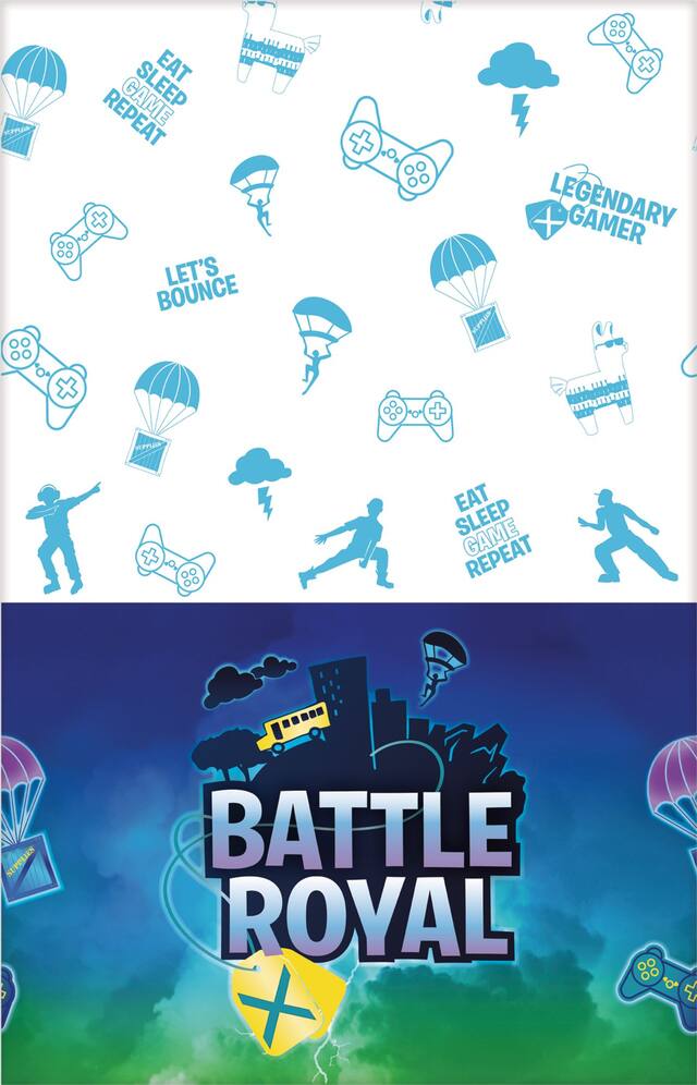 You may be interested in these similar products shown below.Battle Royal Paper Table Cover features a repeating pattern along the edges of the headline "Battle Royal" surrounded by skydivers and supply boxes