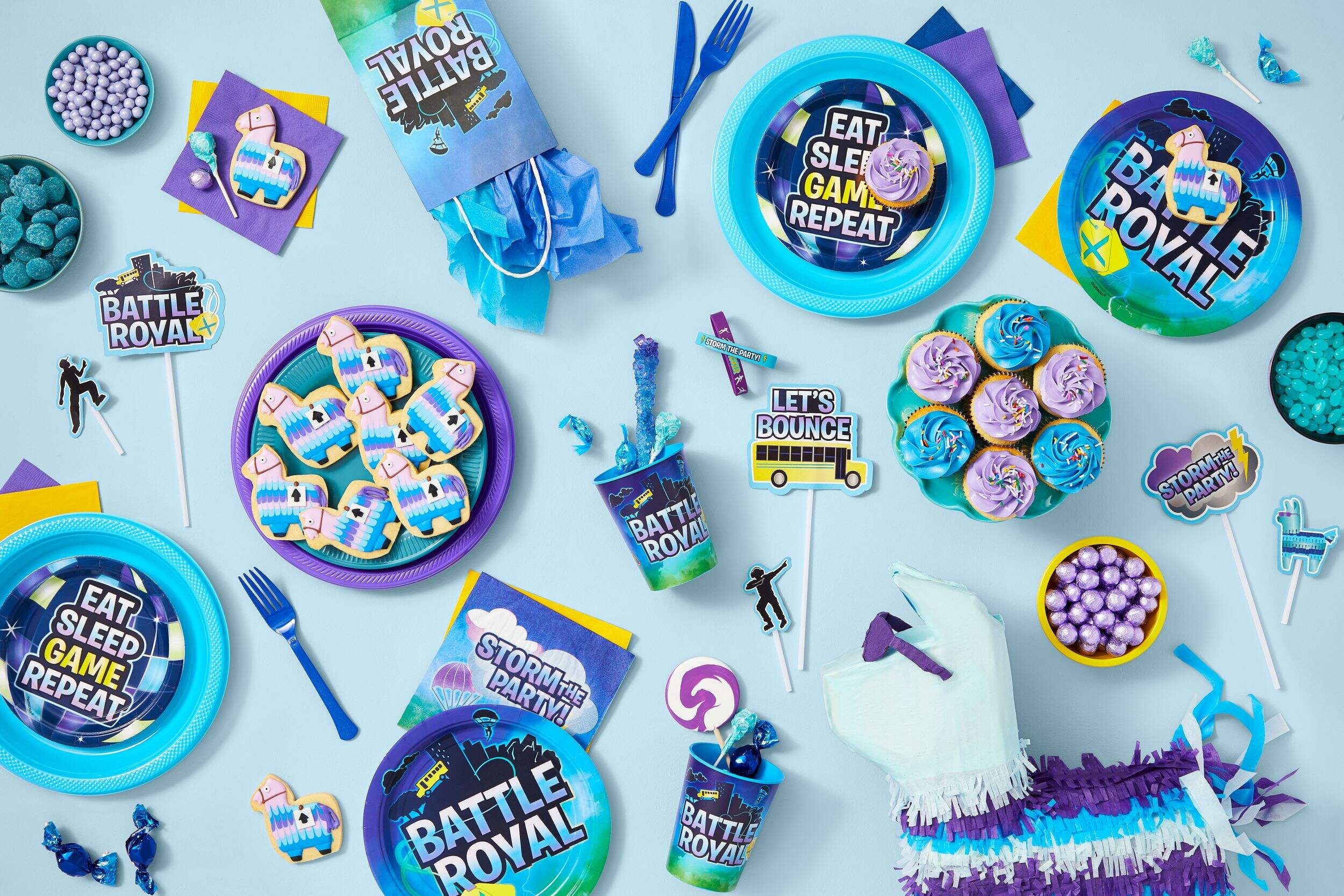 Battle Royal Cupcake Toppers add fun and games to any celebration. The set includes cardstock cutouts of video game controllers, characters and other game-inspired images with phrases like "Eat Sleep Game Repeat" and "Storm the Party!". Simply insert each pick into a cupcake for a magical treat table that transforms an ordinary snack time into a gaming birthday bash. Kids will love spotting their favorite characters while munching on cupcakes.