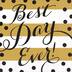 White and gold striped paper napkins feature a cheerful "Best Day Ever! " headline and black polka dots