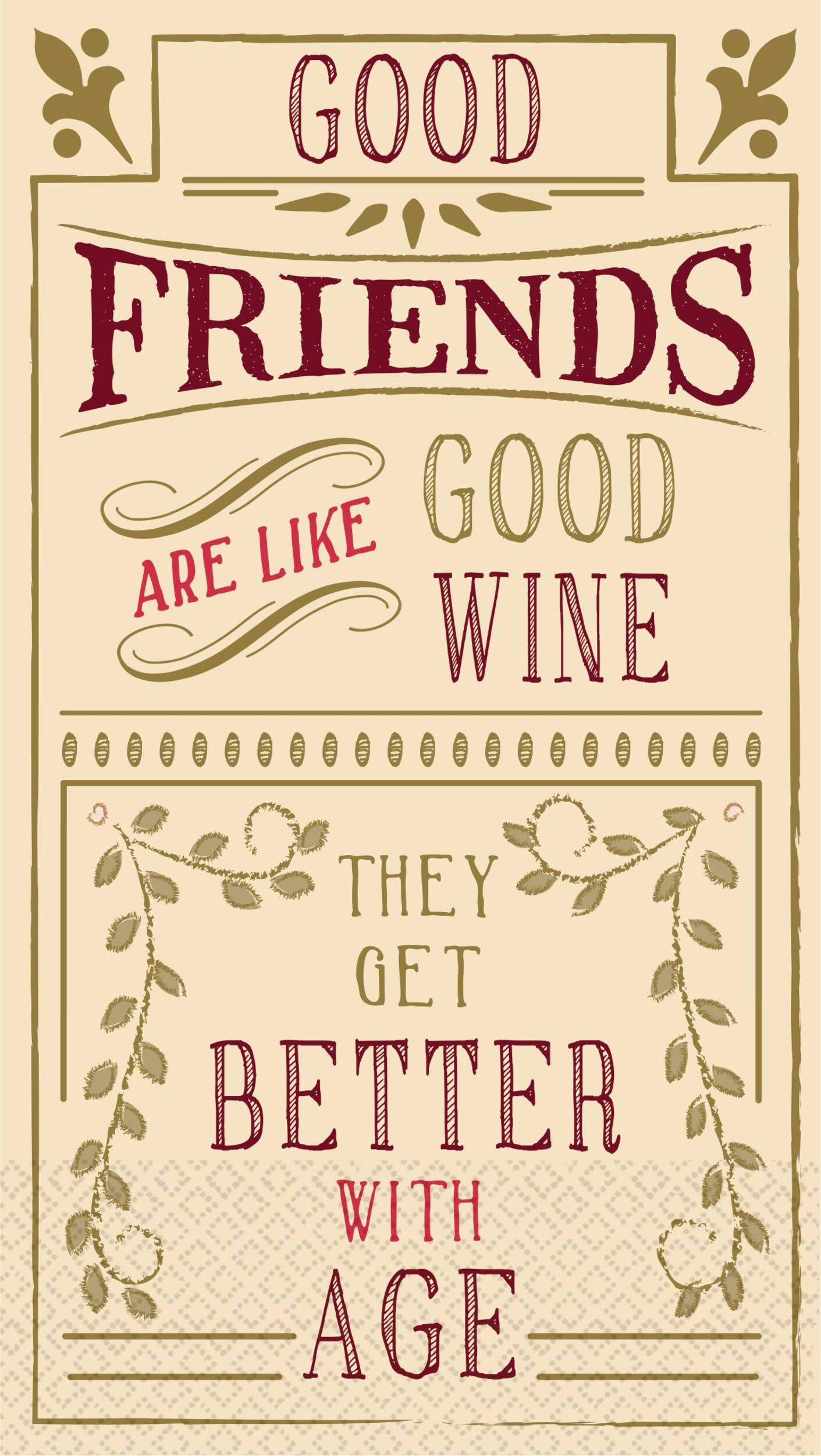 Better with Age Guest Towels comes with a "Good friends are like good wine and they get better with age" headline