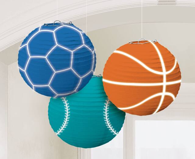 You may be interested in these similar products shown below.Birthday Baller Paper Lanterns are sports-themed faux lanterns in paper globes with sturdy wire frames