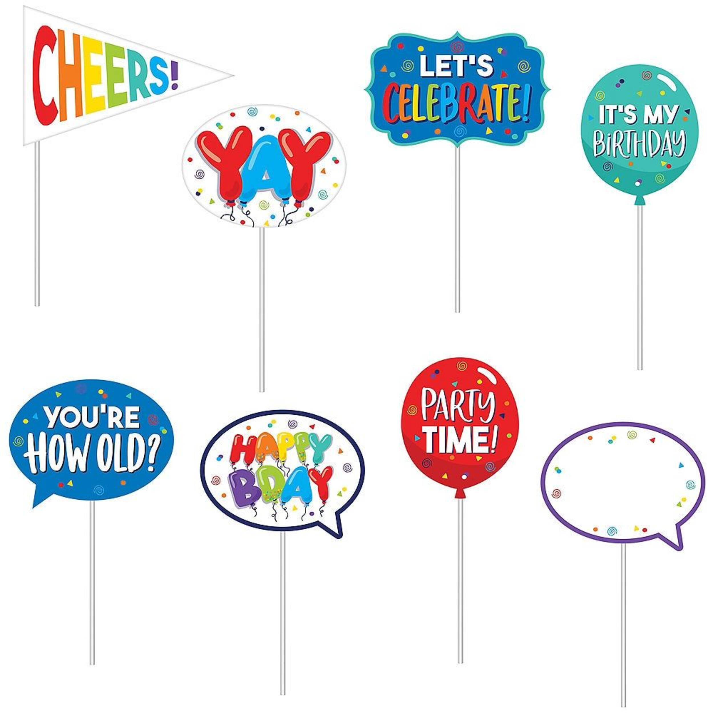 Twenty-two included photo props feature headlines like "It's My Birthday," "Let's Party," and more