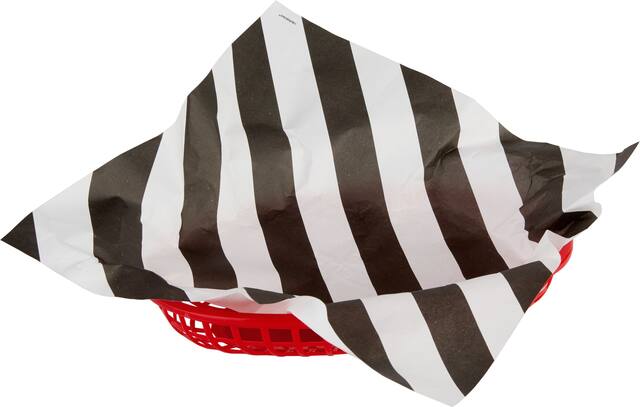 Grease-proof paper liners feature bold black and white stripes