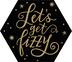 Black cardstock coasters feature a metallic gold "Let's Get Fizzy" headline