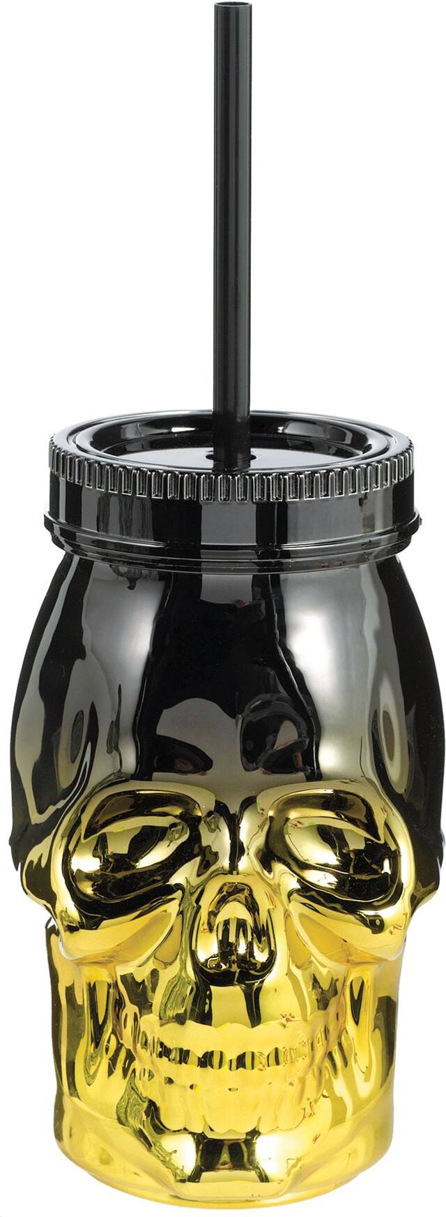 You may be interested in these similar products shown below.Black and Metallic Gold Skull Cup with Straw lets you sip on some spooky drinks this Halloween