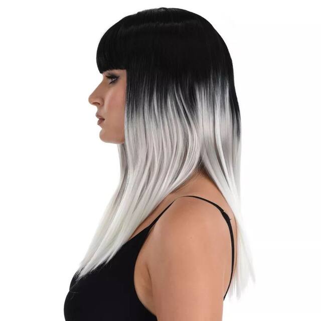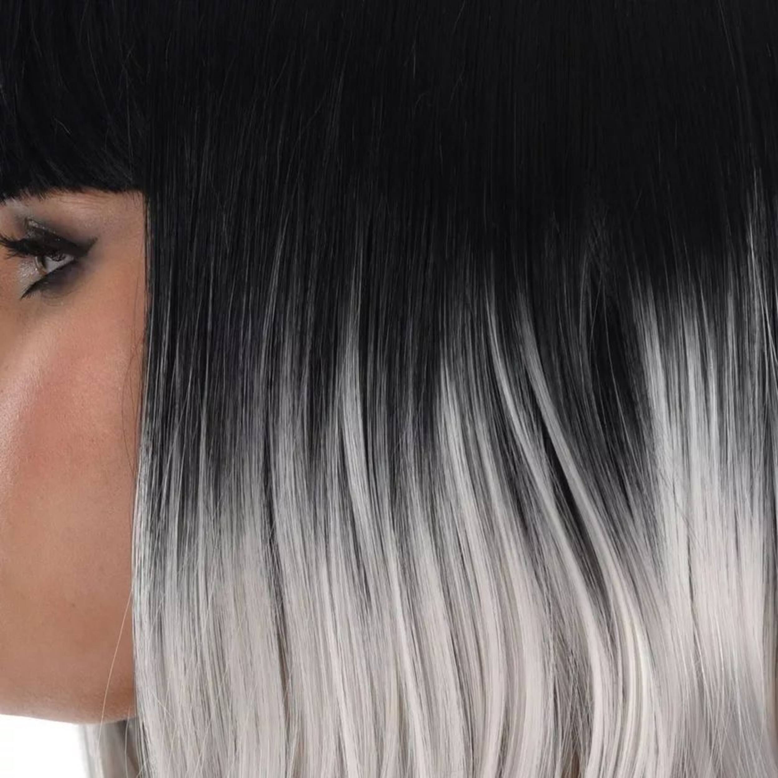 You may be interested in these similar products shown below.Transform your look with the striking Black & White Ombre Wig. This eye-catching wig features a gradient from white to grey to black, perfect for adding a dramatic flair to any costume or outfit. Ideal for both adults and teens, it offers a comfortable fit and a bold style statement.