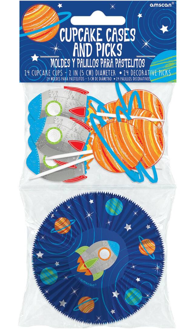 Standard-size baking cups come in outer space design
